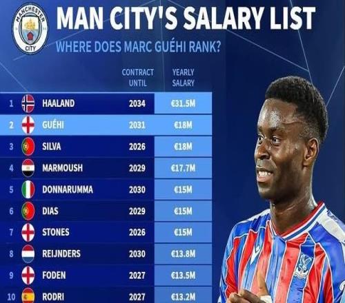 德转列曼城年薪榜:哈兰德3150万欧居首,格伊和B席1800万欧